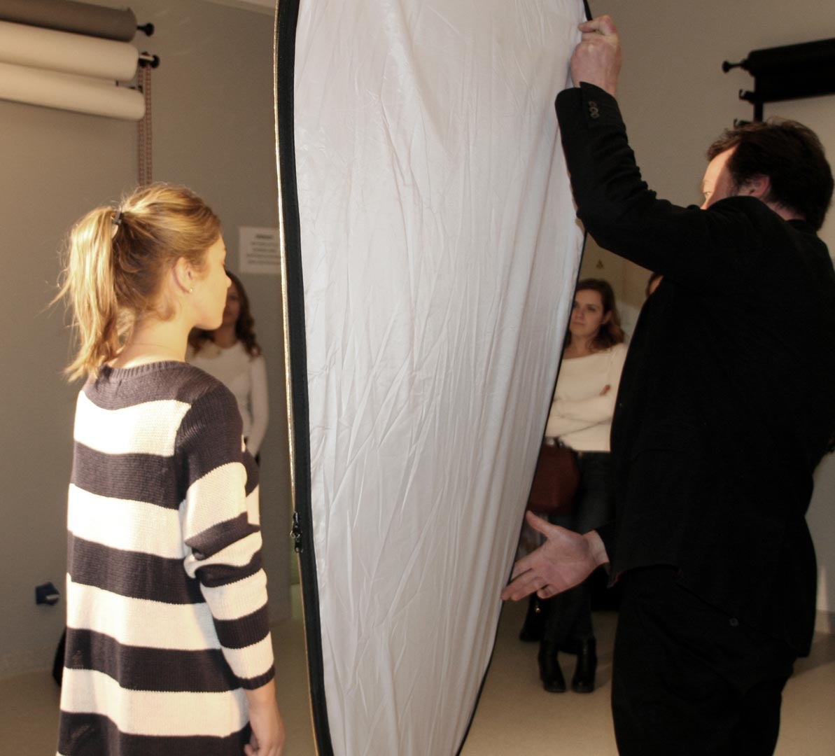 Vilniaus paslaugų verslo darbuotojų profesinio rengimo centre lankėsi Vilniaus universiteto III kurso žurnalistikos specialybės, fotožurnalisto specializacijos studentai. Jie susipažino su centro fotografijos studija, kur profesijos mokytojas Paulius Račiūnas pasakojo apie apšvietimo įrangą, kurią naudojasi žurnalistai, fotografuodami išvykoje. Studentai taip pat fotografavo įvairių specialybių mokinių darbo procesą – portretą darbo aplinkoje. Atsisveikindamas profesijos mokytojas Paulius Račiūnas pakvietė studentus apsilankyti kitą kartą ir kartu dalyvauti su fotografijos specialybės mokiniais bendrame kūrybiniame projekte.